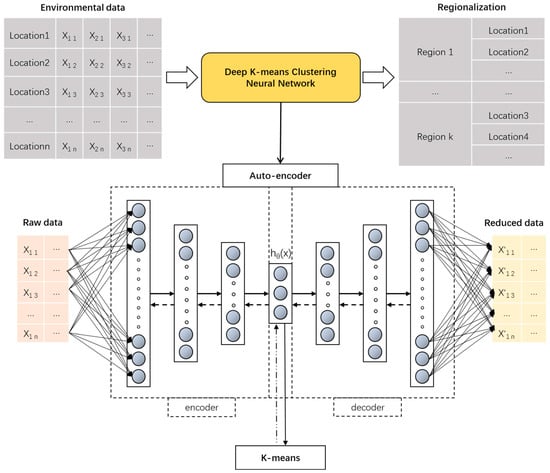 Clustering algorithms are extensively employed in the analysis of meteorological data to delineate boundaries of small ecological regions. In a study on the meteorological sensitivity of PM2.5 in Cincinnati, Ohio, Roy et al. combined principal component analysis and multivariate regression analysis with the K-Means algorithm to obtain clustering results that facilitate mining the relationship between PM2.5 and meteorological environmental factors [5]. Sweta Chakraborty et al. used the semi-supervised hard K-Means algorithm and Fuzzy C-means (FCM) algorithm to cluster meteorological data [6]. Compared to solely applying K-Means [7] or FCM [8], the enhanced algorithm effectively preserves a greater amount of known information [9], thereby utilizing more data features to accomplish the clustering of meteorological data. However, most traditional clustering algorithms can only cluster the data based on its original data and cannot further explore the complex relationship between various factors within the data [10]. For instance, there may exist linear or non-linear correlations between temperature, wind speed and rainfall in meteorological data. The Deep K-Means Clustering Neural Network (DKMCNN), which integrates deep neural networks with clustering algorithms, was employed in this study to further examine the intrinsic correlation between environmental variables and delineate small ecological regions.
