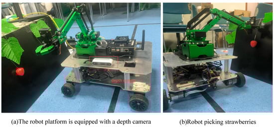 This setup aimed to validate the system’s ability to accurately detect and localize strawberry keypoints, providing precise positional information for the robotic arm’s picking operations. The platform’s stability and camera placement were carefully designed to replicate real-world conditions and ensure the reliability of experimental results.