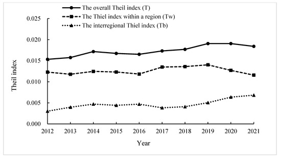 Theil index is commonly employed to evaluate economic variations between regions [20]. A higher value of the Theil index indicates more significant disparities among those areas, while a lower value implies reduced inequalities.