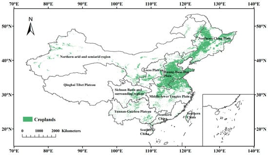 China’s croplands in 2001–2020 and division of nine agricultural regions.