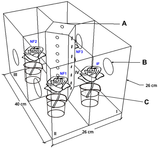 - Avellaneda, J.; Díaz, M.; Coy-Barrera, E.; Rodríguez, D.; Osorio, C. Rose volatile compounds allow the design of new control strategies for the western flower thrips (Frankliniella occidentalis). J. Pest Sci. 2021, 94, 129–142. [Google Scholar] [CrossRef]