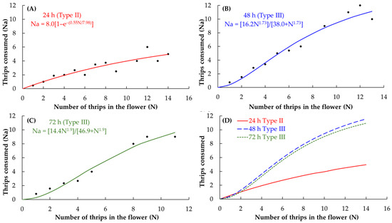 3.2. Functional Response Models of O. insidiosus Under a Greenhouse Scenario
