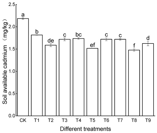 3.6. Effect of Biochar-Based Organic Fertilizer on Available Cadmium Content in Cadmium-Contaminated Soil