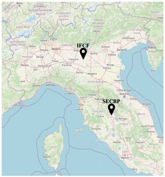 The required data were collected to be entered into the tool to perform the calculations. The same data collection procedure were used for both farms. Based on the CAP’2ER® study, a questionnaire including 42 questions was developed, covering farm characterization (7), herd characteristics (17), quantity and quality of meat produced (6), field crops (5), and inputs used (7). The questionnaires were administered through on-site visits and direct interviews with the farm owners or the managers of the livestock operations. Each farm was visited three times, during which both desk-based analyses and field and barn inspections were conducted. Additionally, both companies were asked to provide documents and information for estimating GHG emissions. In particular, the following documents were used: the farm dossier, the agricultural utilization plan (PUA), the barn register (BDN), and the crop plan and data related to the selling price. These documents were used to obtain accurate data on the number of hectares managed by each farm, the cultivated crops, the number of livestock, and the quantity of inputs employed. We processed the collected data using Excel files to generate the inputs required by CAP’2ER® (powered by the Institut de l’Élevage–Idele, Paris, France). To assess emissions by means of CAP’2ER® [30], we collected data for the three categories required by the software: herd category, feed category, and energy use category. In doing so, it was possible to observe the differences in farming methods and the types of livestock farming adopted by the two farms (for detailed information, please see Table A1 in the Appendix A).