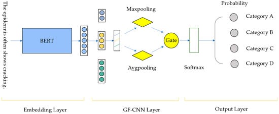 20], resulting in the efficient construction of the Potato Pest and Disease Question Classification Dataset (PDPQCD). Moreover, this paper introduces the gated fusion–convolutional neural network (GF-CNN) to optimize the text feature extraction process. The model captures local features through parallel multi-scale convolutions and then employs both max-pooling and average-pooling to extract salient and global statistical features. A gating unit was designed to dynamically fuse these two feature representations, enhancing feature robustness while preserving critical information.