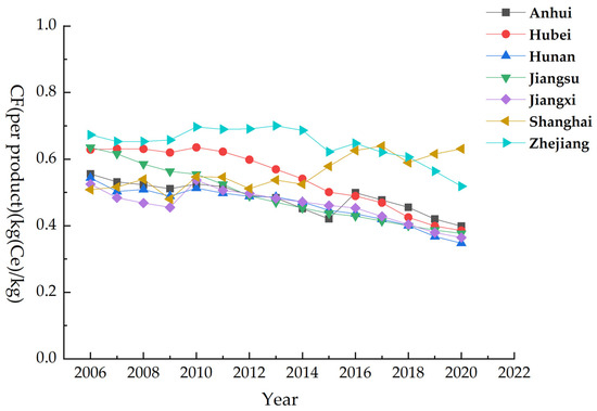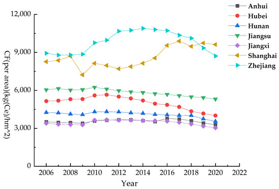 5.2. Characteristics of the Carbon Footprint of Agricultural Production in the Middle and Lower Yangtze Rivers