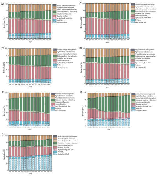 4.4. Analysis of Agricultural Carbon Emission Composition