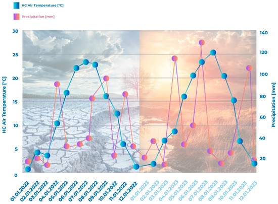 Seasonal variations in air temperature and precipitation for 2022–2023.