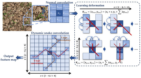 - A Dynamic Slender Convolution (DSC) module is developed to enhance the perception of the geometric structure by adaptively focusing on the slender and flexible local features of the leaf-shaped structure of wheat seedlings.