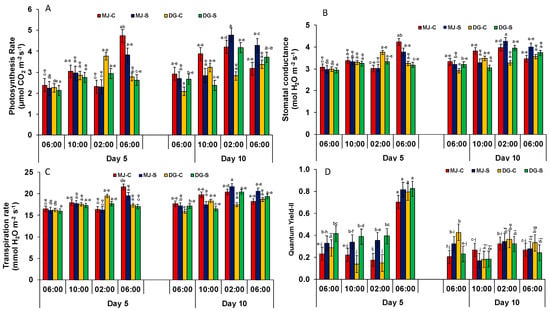 - Muneer, S.; Park, Y.G.; Manivannan, A.; Soundararajan, P.; Jeong, B.R. Physiological and proteomic analysis in chloroplasts of Solanum lycopersicum L. under silicon efficiency and salinity stress. Int. J. Mol. Sci. 2014, 15, 21803–21824. [Google Scholar] [CrossRef]