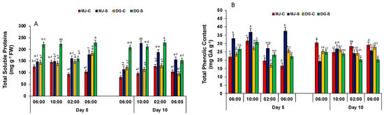 - Vajjiravel, P.; Nagarajan, D.; Pugazhenthi, V.; Suresh, A.; Sivalingam, M.K.; Venkat, A.; Mahapatra, P.P.; Razi, K.; Al Murad, M.; Bae, D.W.; et al. Circadian-based approach for improving physiological, phytochemical and chloroplast proteome in Spinacia oleracea under salinity stress and light emitting diodes. Plant Physiol. Biochem. 2024, 207, 108350. [Google Scholar] [CrossRef] [PubMed]