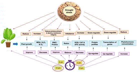 - Sharma, M.; Irfan, M.; Kumar, A.; Kumar, P.; Datta, A. Recent insights into plant circadian clock response against abiotic stress. J. Plant Growth Regul. 2022, 41, 3530–3543. [Google Scholar] [CrossRef]