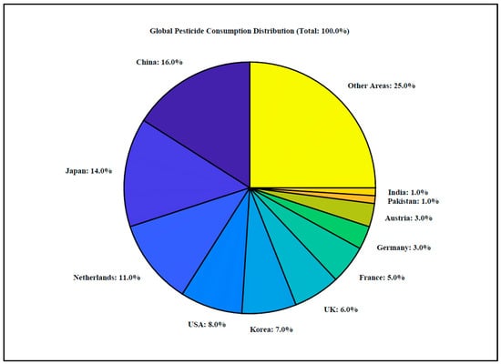 - Rajput, S.; Sharma, R.; Kumari, A.; Kaur, R.; Sharma, G.; Arora, S.; Kaur, R. Pesticide residues in various environmental and biological matrices: Distribution, extraction, and analytical procedures. Environ. Dev. Sustain. 2022, 24, 6032–6052. [Google Scholar] [CrossRef]