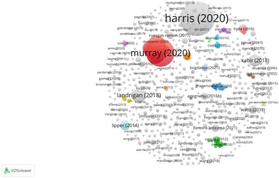 Finally, for the analysis and visualization step, we employed VOSviewer 1.6.18 to generate graphical network visualizations that illustrate relationships between key research elements such as authors, keywords, and institutions. These visualizations are represented by circles, where the size of each circle indicates the frequency of occurrences in publications. The lines between circles represent co-occurrence or co-citation relationships, and different colors denote thematic clusters [61,62,63,64,65].
