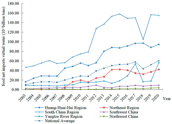 Food net imports virtual water change characteristics in China during 2003–2020.