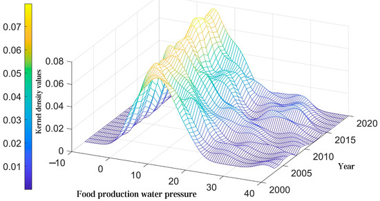 Estimated kernel density index of water pressure in food production, 2003–2020.
