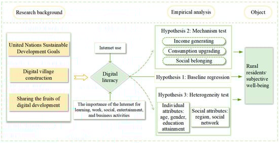 Rural residents’ digital literacy level influences subjective well-being through increasing income, upgrading consumption, and social belonging.