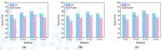 | OA (%) | Kappa (%) | OA (%) | Kappa (%) | OA (%) | Kappa (%) | |