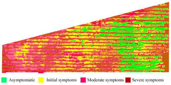 | S | Severe symptoms | 0.26–0.50 | Large number of leaves infected with larger spots |