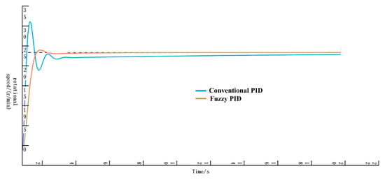 It can be seen from the calculations in Table 9 that, compared with conventional PID control, the system under fuzzy PID control exhibits a 36.41% reduction in steady-state error and a 47.26% reduction in steady-state time, with no overshoot. This demonstrates a certain superiority in control effect.