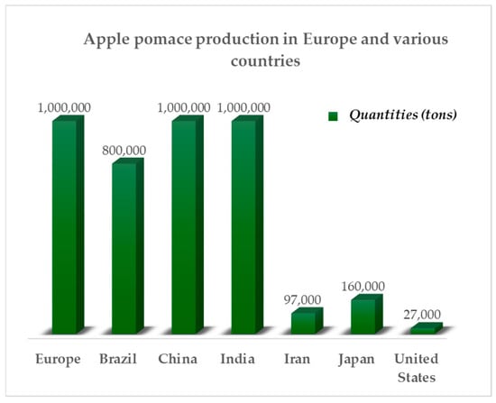 The estimated production of apple pomace in Europe and other countries [4,6].