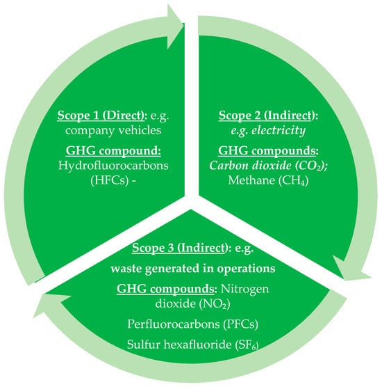Scopes and chemicals of GHG emissions [27,29].