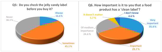 Survey results for questions Q5: checking the jelly candy label; and Q6: appreciation of a ‘clean label’.