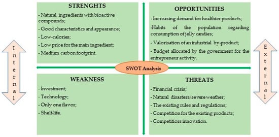 The current study proposes a new approach for apple pomace valorization in a new healthy jelly candy, that is also environmentally friendly. The proposed recipe is simple, clean, and sugar-free, with natural color and flavor, originating from apple pomace. Moreover, the high bioactive compound content of the raw materials (apple pomace) used in the preparation leads to an enriched nutraceutical product with health-protecting properties [10]. The WAW (With Apple Waste) jelly candies were designed to be served as dessert and also as snacks by all categories of consumers, including those with sugar restrictions, diabetics or overweight people. The environmental impact of the proposed jellies was evaluated through the carbon footprint calculation. In addition, in order to evaluate the consumers’ expectations and to obtain valuable feedback on this new product, customer research was conducted and a marketing plan was proposed.