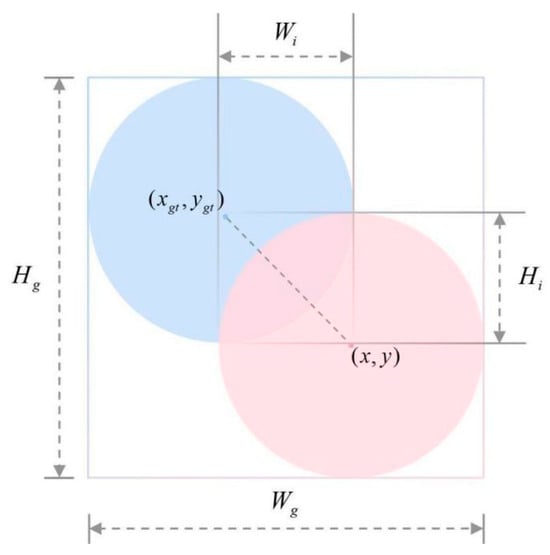Standard NMS ranks all candidate bboxes by their confidence scores and deletes redundant ones based on the threshold and ranking [37]. However, in practical use, when different category objects are close, a large IOU can cause NMS to wrongly delete candidate boxes, leading to missed detections. Distance-intersection-over-union-based NMS (DIOU, [38]) was proposed to tackle this problem. The DIOU-NMS is expressed by Equations (1) and (2):