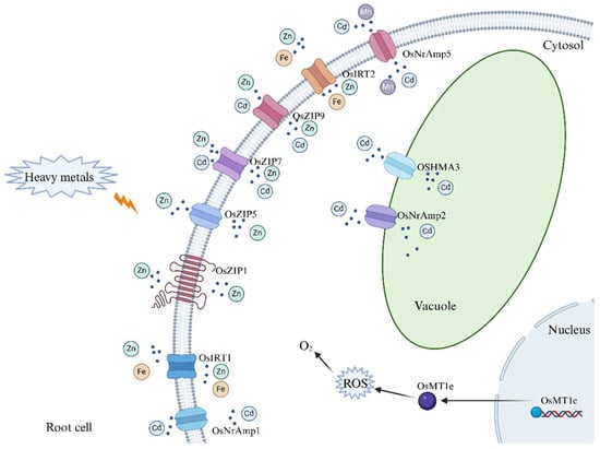 The effects of heavy metals on rice are closely related to their concentration levels. Studies have found that high concentrations of cadmium (75–100 μmol/L) significantly inhibit rice seedling growth, reducing plant height by 14.6–21.9% and dry weight by 10.1–18.4%. Cd primarily accumulates in the roots, severely affecting rice quality [145]. Similarly, high concentrations of lead (1.2 mM) significantly inhibit plant height, tiller number, panicle number per plant, number of spikelets per panicle, and panicle length, as well as dry biomass and thousand-grain weight. Lead exposure induces oxidative stress, increasing hydrogen peroxide accumulation, activating antioxidant enzyme systems, altering the activity of CAT and SOD, and increasing superoxide anion (O2−) levels. This leads to a significant reduction in total protein content, affects photosynthesis, and causes chlorophyll content to decrease, severely impacting rice growth, yield, and physiological metabolism [146].