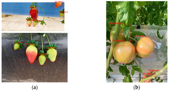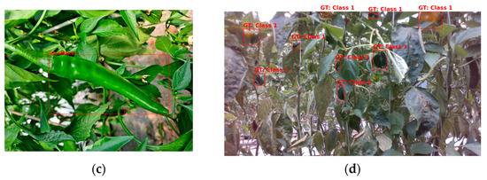 Figure 3. Bounding boxes for each image: (a) strawberries, (b) tomatoes, (c) chilies, and (d) peppers.