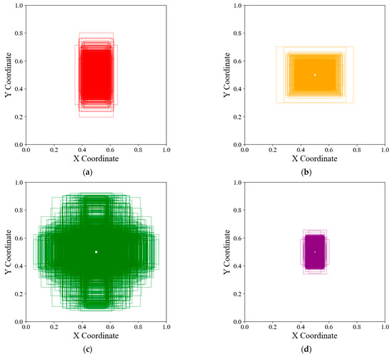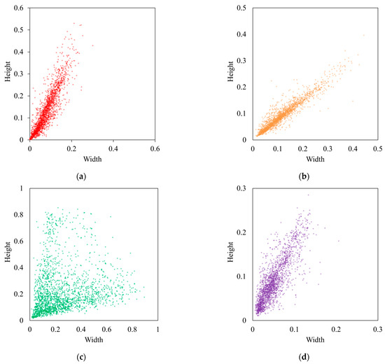 Figure 4. Comparison of bounding box sizes through center point aggregation: (a) strawberries, (b) tomatoes, (c) chilies, and (d) peppers.