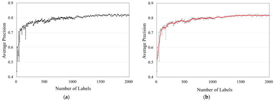 Variability was observed during the generation of AP curves by the model. This variability reflects the aggregated outcomes of numerous small-scale datasets trained with different numbers of labels and cannot be dismissed as noise. Although the AP curve generally trends upward, it also exhibits significant fluctuations across certain intervals. These fluctuations indicate how the model performance changes depending on the dataset, thereby complicating its consistent evaluation.