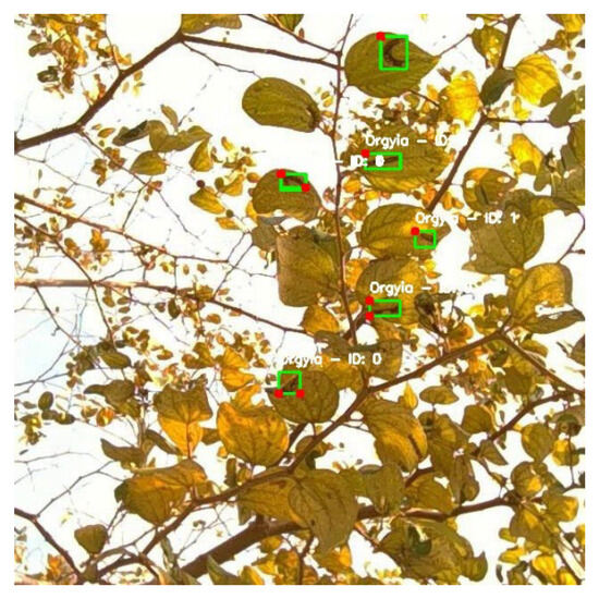 Effective tracking mechanisms are crucial for our system’s functionality, extending beyond mere object detection. Trackers are essential for maintaining the identity and trajectory of detected objects across successive frames, which is vital for continuous monitoring and timely intervention. To identify the fast and optimal tracking solution for our application, we selected the SORT (Simple Online and Realtime Tracking) algorithm [25]. While more advanced trackers like DeepSORT, BYTETrack, OCSORT, BotSORT, and StrongSORT [26,27,28,29,30] offer various enhancements and additions to the original SORT algorithm, we selected SORT for its effective balance of computational efficiency and tracking accuracy in real-time applications [27,30], making it particularly suited for our needs. The integration of YOLO-NAS with the SORT tracker results in a powerful combination. YOLO-NAS excels in detecting small objects with high precision, while SORT provides efficient and low-overhead tracking capabilities, as this is required while deploying in real-time scenarios with embedded devices on agricultural vehicles. This synergy enables real-time precise detection and tracking, ensuring seamless deployment in real-world orchard environments. Additionally, our research enhances the system’s functionality with features like selective corner tracking, which allows for more advanced applications such as laser-based elimination. By precisely identifying the head and tail of caterpillars, this approach supports targeted pest control measures, further improving the effectiveness of our system.