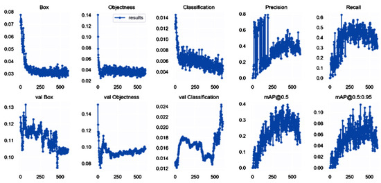 In order to comprehensively evaluate the performance of different models in the black spot detection task of rice diseases, several mainstream target detection algorithms recognized by the industry were selected, and the test data sets were applied to these models for rigorous comparative tests. The training results of YOLOv8-EDCA are shown in Figure 6 and Figure 7.