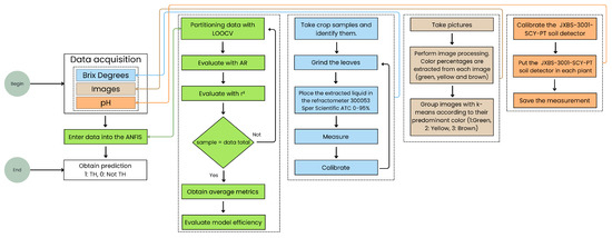 The main objective of this study is to develop a predictive system based on ANFIS for determining TH in Stevia crops. The model integrates pH, BD, and leaf colorimetry as independent variables, given their significant role in nutrient availability and crop maturity assessment. The central hypothesis is that an ANFIS model trained on these indicators can reliably predict whether a Stevia crop is ready for harvest. The specific objectives of this study are as follows: