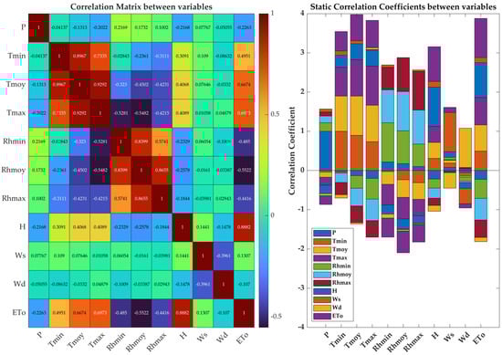 This subsection investigates the intricate relationships between ETo and the various meteorological variables in Table 2. The primary objective is to uncover and analyse the underlying interdependence and correlations between ETo and these influencing factors. Understanding these connections is vital for developing accurate models, enhancing prediction and forecasting capabilities, and supporting informed decision making in the context of sustainable agriculture.