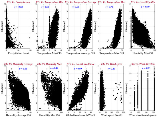 ETo versus the studied variables.