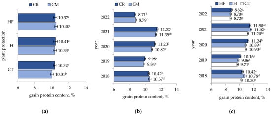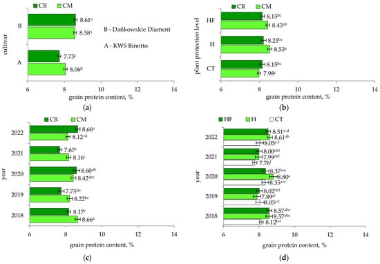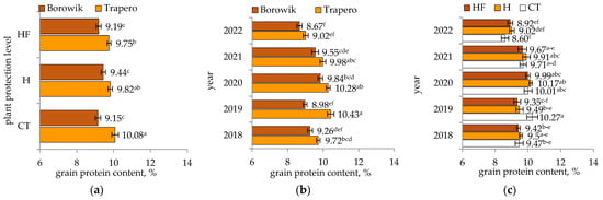 The Grain Protein Content of Polish Cereals Other than Wheat: Can It Be Increased by Combining a Crop Sequence System, Cultivar Selection, and Plant Protection?