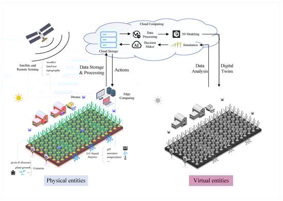 - Bali, M.K.; Singh, M. Farming in the Digital Age: AI-Infused Digital Twins for Agriculture. In Proceedings of the 2024 3rd International Conference on Sentiment Analysis and Deep Learning (ICSADL), Bhimdatta, Nepal, 13–14 March 2024; pp. 14–21. [Google Scholar] [CrossRef]