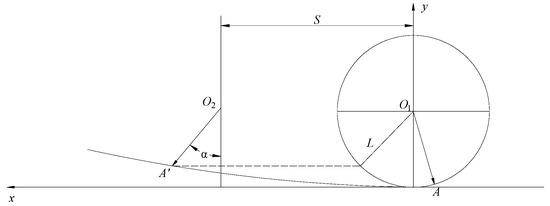 As can be seen from Figure 9, the coordinates of point A are (s cosα, s sinα), the coordinates of point B are (L5, h), and the equation of the parabolic guide curve of the film-lifting shovel is
