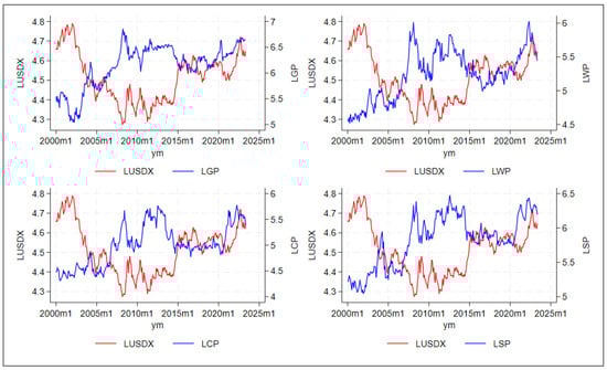 30]. Extensive historical data analysis reveals that the U.S. dollar index and commodity prices exhibit a clear negative correlation. Notably, major surges and declines in commodity prices since the 21st century have been closely associated with the depreciation or appreciation of the U.S. dollar [
