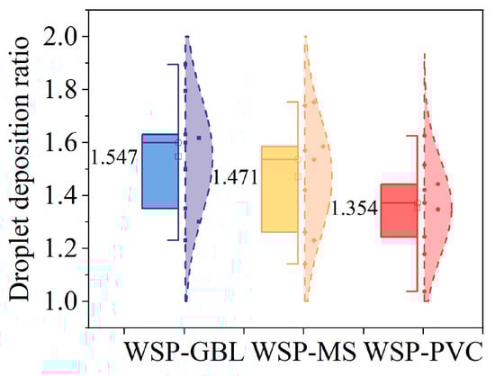 Based on the optimal RB spray solution concentration, the results of the WSP deposition measurements were analyzed to obtain the droplet size parameters of the droplets.