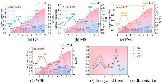 The formulas for calculating spray deposition on various droplet collectors are shown in Equations (6)–(9), and the deposition amounts were measured on the samplers obtained from the tests.