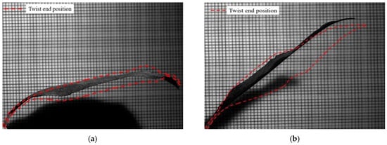 Bending and torsion behavior of peach leaves under an 8 m/s wind field with different moving speeds: (a) 1.0 m/s; (b) 0.5 m/s [107].