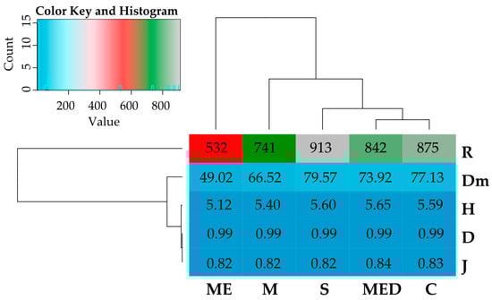 | MED | 8.75 ± 0.33 c | 0.34 ± 0.01 a | 0.69 ± 0.03 b | 4.26 ± 0.17 c | 1.20 ± 0.02 a | 0.21 ± 0.01 a | 1.18 ± 0.02 a | 16.63 ± 0.45 c |