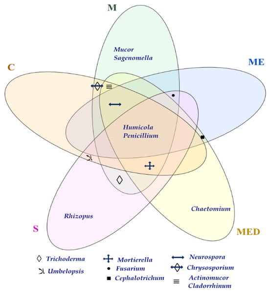 - Frąc, M.; Pertile, G.; Panek, J.; Gryta, A.; Oszust, K.; Lipiec, J.; Usowicz, B. Mycobiome composition and diversity under the long-term application of spent mushroom substrate and chicken manure. Agronomy 2021, 11, 410. [Google Scholar] [CrossRef]