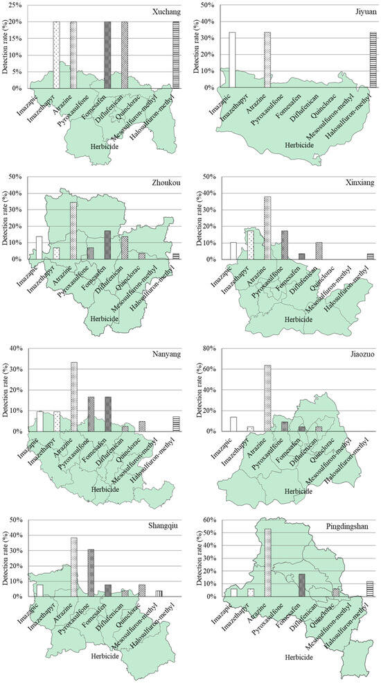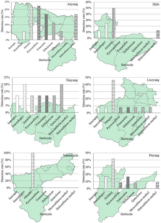 Chicago/Turabian StyleLi, Guangling, Yang Yang, Shoumeng Wang, Dongzhi Li, Runqiang Liu, Youduo Zhang, and Yanbing Wu. 2025. "Investigation and Analysis of the Residual Status and Distribution of Long-Lasting-Effect Herbicides in Field Soil: A Case Study of Henan Province, a Major Agricultural Producing Area in China" Agriculture 15, no. 9: 996. https://doi.org/10.3390/agriculture15090996