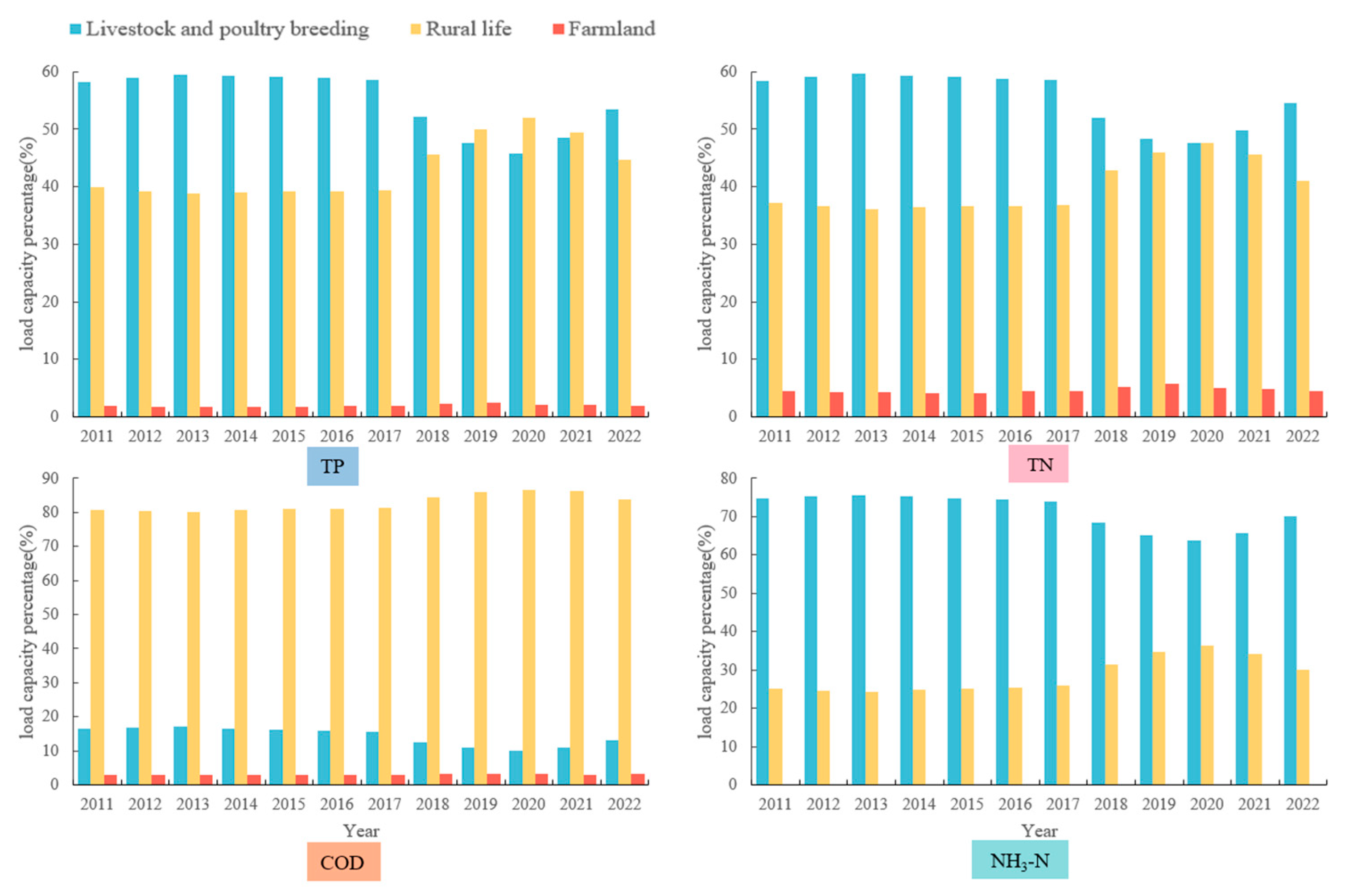 - Ge, X.; Huang, B.; Yuan, Z.; Wang, D.; Wang, Q.; Chen, J.; Xie, Z. Spatial and temporal changes and source analysis of agricultural non-point source pollution load in Guangdong Province in the past 20 years. Environ. Sci. 2022, 6, 3118–3127. (In Chinese) [Google Scholar] [CrossRef]