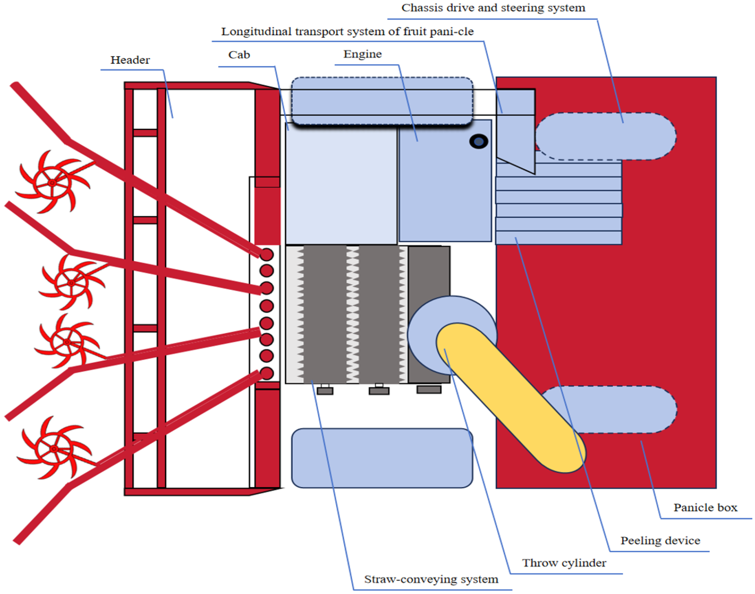 - Dong, W.; Wu, Y.; Liu, F.; Hu, H.; Yan, J.; Bai, H.; Zhao, X. Design and Experiment of a Harvesting Header for Wide-Narrow-Row Corn. Appl. Sci. 2024, 14, 1309. [Google Scholar] [CrossRef]